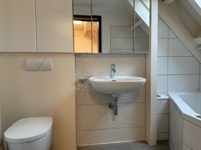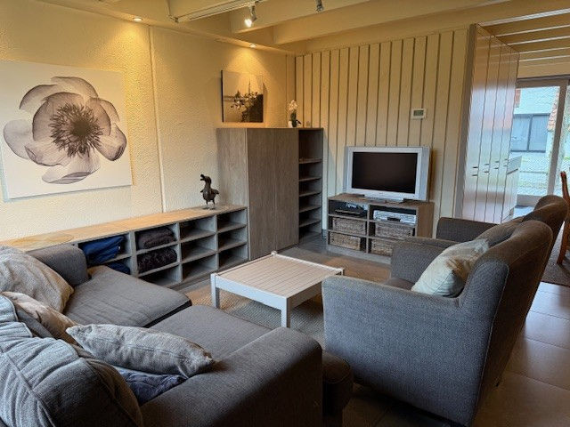 La cuisine fonctionnelle est dotée d’un débarras pratique avec accès direct. Le séjour aménagé avec beaucoup de charme séduit par son ambiance chaleureuse et ses meubles encastrés astucieux, apportant un espace de rangement optimal et une finition soignée.